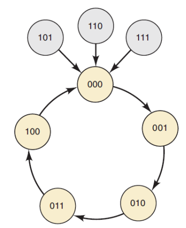 2. 모든 가능한 상태를 보여주는 state transition diagram을 그린다. ( 카운팅 시퀀스에 포함되지 않는 경우까지 고려)