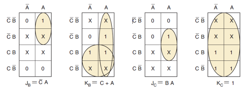 따라서 제어입력에 대한 카르노맵( 입력 기준)을 그려보면, 카르노맵 크기는 d 상태+기존 상태 bit 수이고, 플립플롭의 개수는 그대로 기존 상태 bit 수를 유지한다.