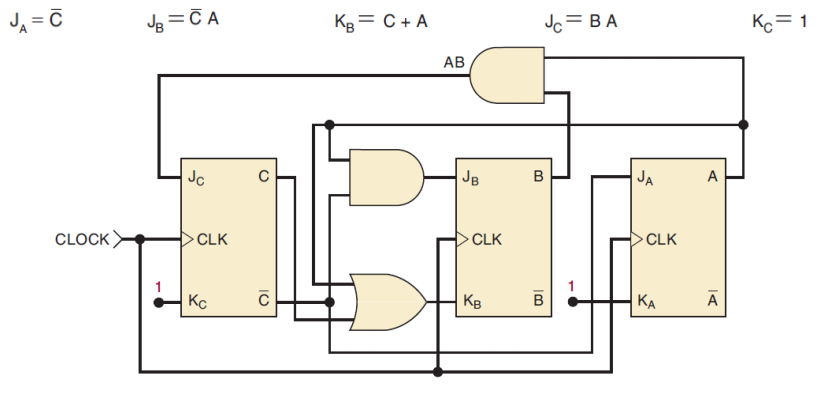 5. 각 J, K 입력의 값을 생성하는 데 필요한 논리회로를 설계한다.